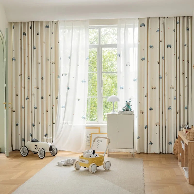Avec ses motifs voiture, ses petites étoiles, et sa finition de qualité, ce rideau décoratif transforme la pièce en espace cosy tout en garantissant intimité et confort lumineux. Le tissu semi-occultant diminue efficacement l’éblouissement tout en laissant entrer une lumière plaisante pour les siestes ou moments de jeu.