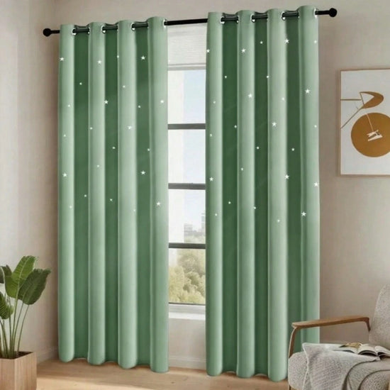 Rideau chambre enfant – occultant vert avec étoiles découpées!